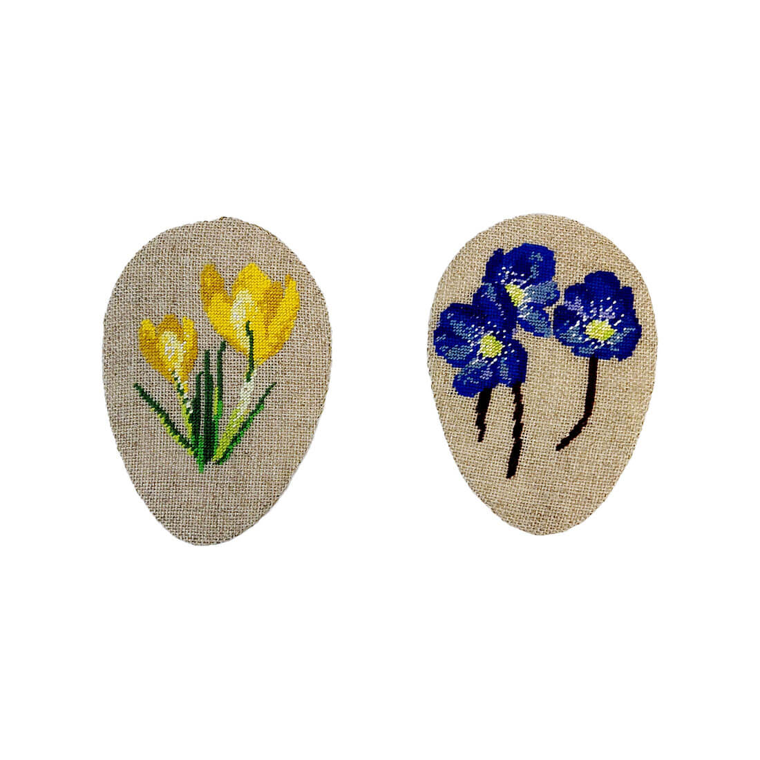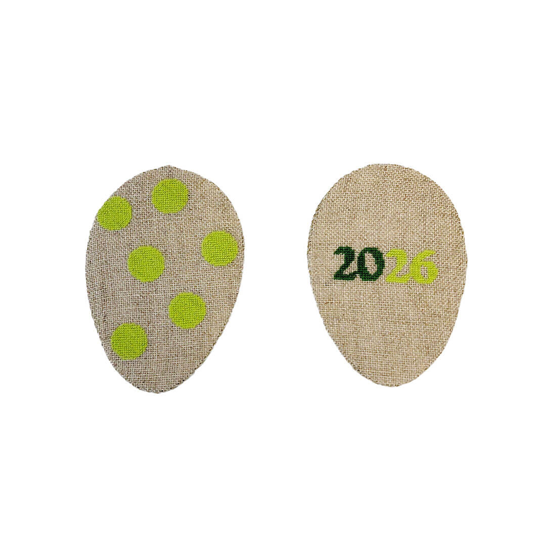 Hvert påskeæg har et gennemtænkt samspil mellem forside og bagside. Forsiden er broderet med et floralt motiv, hvor blomstens form og farver træder tydeligt frem mod det ublegede hørlærred. Bagsiden har et mere enkelt grafisk udtryk, der enten kan fungere som rolig kontrast eller som en selvstændig side i ophængningen. Årstallet 2026 indgår diskret og gør ægget til et lille tidsbillede, som kan tages frem år efter år.