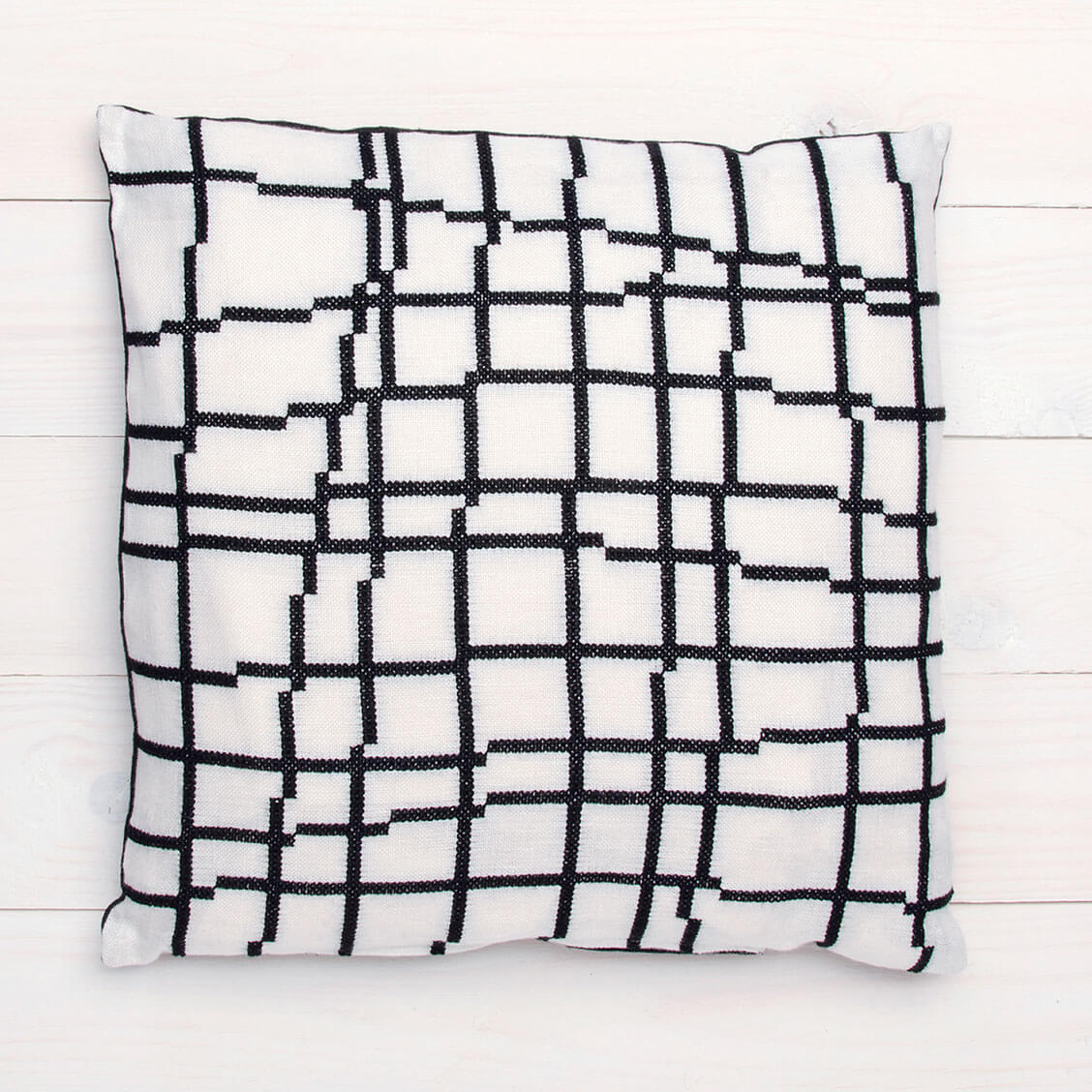 K1:11 cushion is a light and poetic embroidery design created by Renée Rudebrant. With simple crisscrossing lines, she has created a graphic pattern that appears open and lively, despite the otherwise angular and systematic structure of cross stitch.